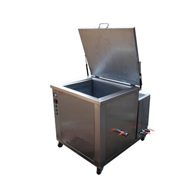 2.單槽超聲波清洗機可選用熱鍍鋅及不銹鋼外殼,內部配PU噴淋管道,封閉經過式通道。清洗設備上罩部分選用單面結構,選用1.2mm厚的不銹鋼鋼板制做,外有隔熱層,減少耗能。